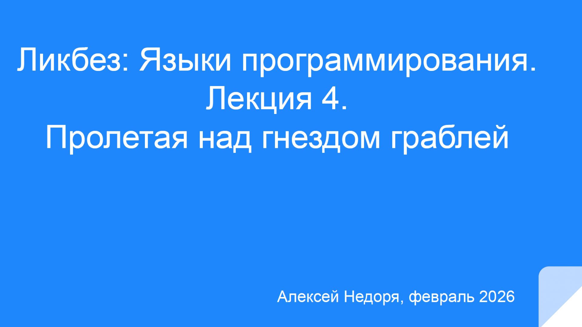 Языки программирования. Лекция 4. Пролетая над гнездом граблей от Алексея Евгеньевича Недоря — ведущего специалиста в области языков программирования и компиляторов. Организовано сообществом "Ворчалки о программировании" (https://t.me/vorchalki_o_prog)