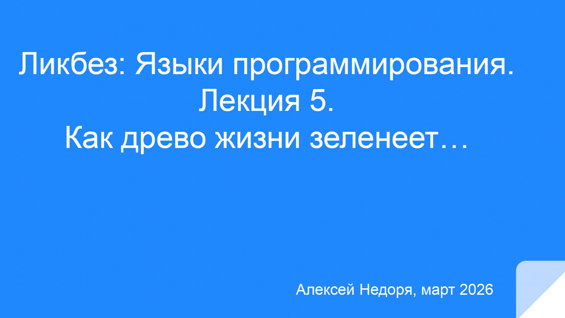Языки программирования. Лекция 5. Как древо жизни зеленеет от Алексея Евгеньевича Недоря — ведущего специалиста в области языков программирования и компиляторов. Организовано сообществом "Ворчалки о программировании" (https://t.me/vorchalki_o_prog)