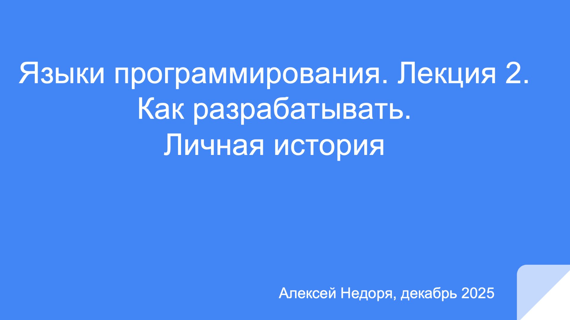 Лекция №1 по разработке языков программирования от Алексея Евгеньевича Недоря — ведущего специалиста в области языков программирования и компиляторов. Организовано сообществом "Ворчалки о программировании" (https://t.me/vorchalki_o_prog)