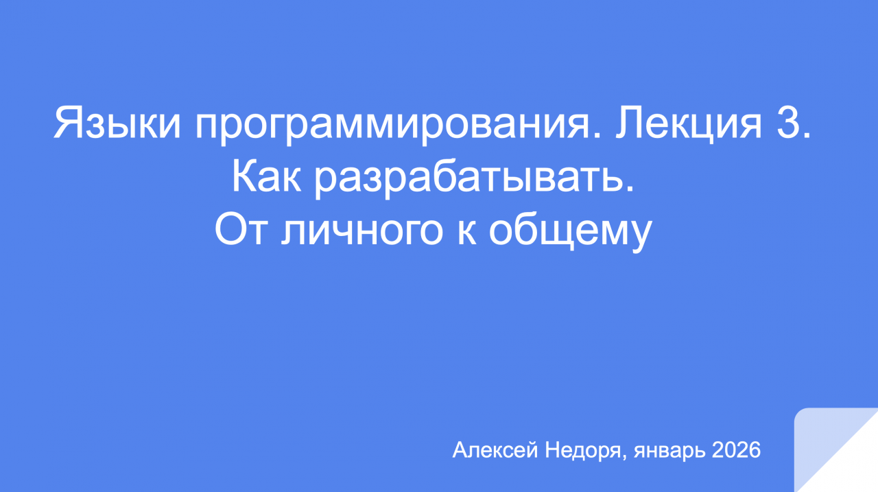 Состоялась третья лекция от сообщества "Ворчалки о программировании" под названием "Языки программирования. Как разрабатывать. От личного к общему"